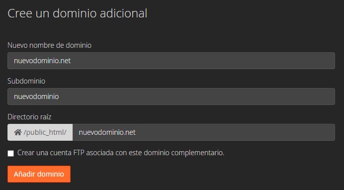 Directorio Raíz: Se completará automáticamente por cPanel.