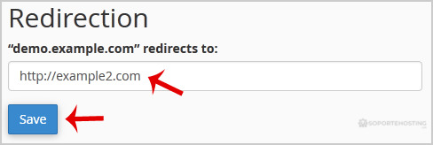 - Debajo de Redirección, debe ingresar el enlace al que desea redirigir el subdominio en el cuadro de texto disponible.