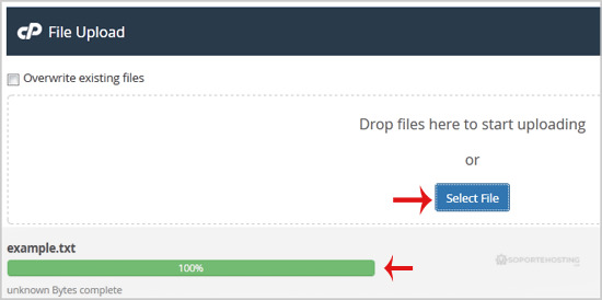 - Clic en el botó Select File y seleccione el archivo que desea cargar desde su PC. Una vez que haya seleccionado el archivo, el proceso de carga comenzará automáticamente.