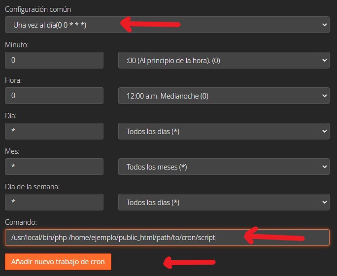 - Debajo de Añadir un Nuevo Cron Job, haga clic en el menú desplegable Configuración común y seleccione una opción adecuada, como Una vez por día u otra opción adecuada.