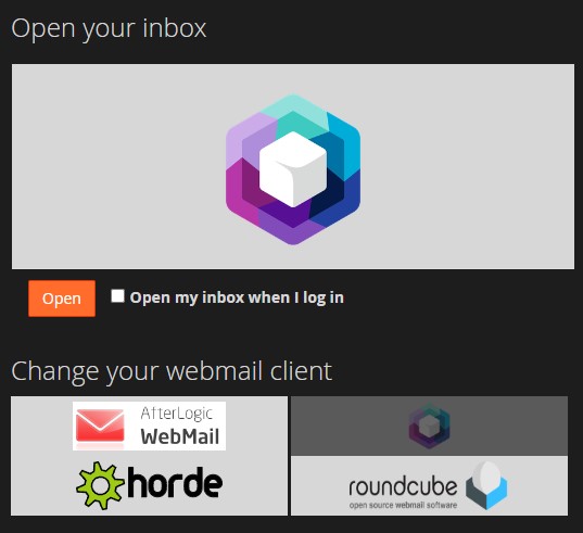 - Se le redirigirá a una página de correo web de cPanel. Haga clic en cualquier lector de correo electrónico de Webmail como Horde, Roundcube o cualquier otra aplicación disponible, pero le recomendamos altamente la opción de CrossBox ya que cuenta con una mejor interfaz y un mejor sistema de administración de correos, notificaciones y opciones de seguridad adicionales.